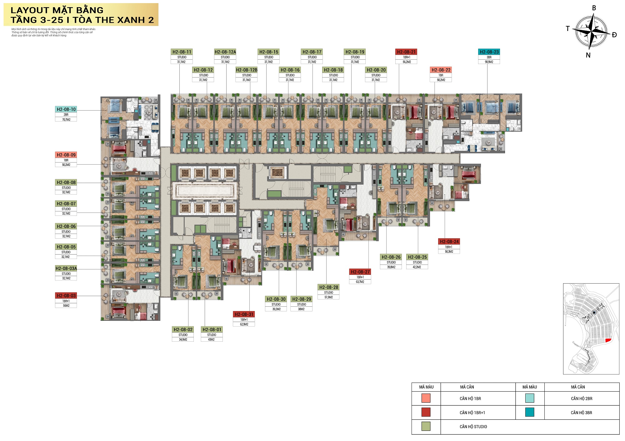 - Loại hình: Studio, 1PN, 1PN+1, 2PN